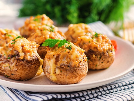 Пълнени гъби печурки с картофено пюре, кашкавал и майонеза