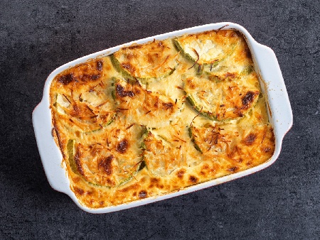 Пролетна запеканка с кайма, морков, картофи, тиквички и кашкавал на фурна