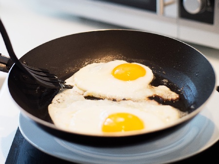 В тиган със загрято олио се изпържват яйцата, докато белтъка побелее. Обръщат се след няколко минути. Поръсват се със сол и червен пипер. Изваждат се и се сервират с кисели краставички и сирене.