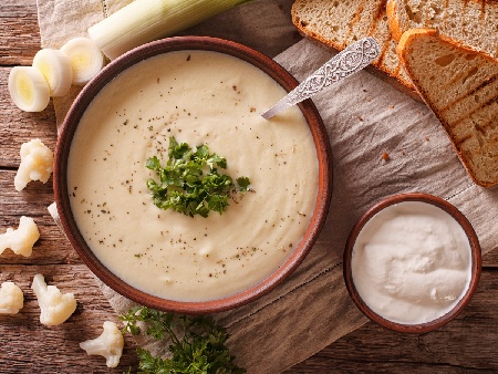 Лукът се запържва и се залива с пилешкия бульон. Когато заври се слагат нарязаните на кубчета картофи и карфиолът – разделен на розички. Овкусява се със сол и черен пипер.
