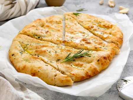 Парчетата тесто се разточват на питки. Маслото се разтопява и се разбърква с накълцаните чесън и магданоз.
