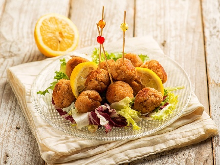 Пържени кюфтета от сьомга филе и картофи по руски