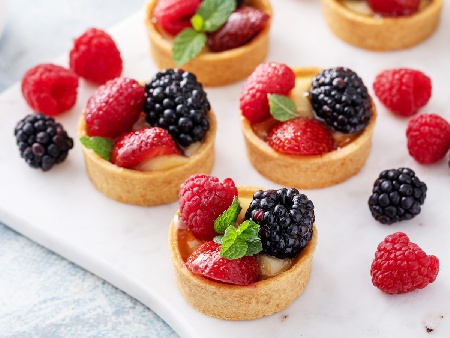 Тарталети с ванилов крем и горски плодове - ягоди, малини, боровинки