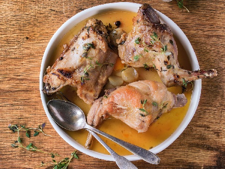 Печен заек на фурна с мед, масло, горчица и бира