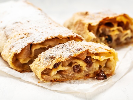 Ябълков щрудел от бутер тесто със стафиди, канела и ванилия