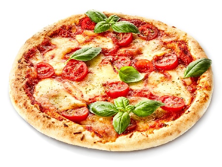 Домашна пица с домашно тесто, моцарела, чери домати и пресен босилек на плоча