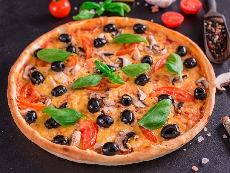 Тестото се разстила и се намазва с доматен сос. Поръсва се с настърганата моцарела. Разпределят се нарязаните салам, домати и маслини. Пицата се поръсва с босилек и риган.