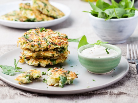 Голяма тава се покрива с хартия за печене и с помощта на лъжица се оформят плоски кюфтета. Пекат се до златист загар в загрята на 180 градуса фурна.