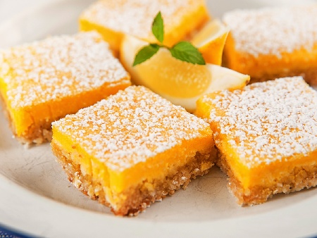 Изпечената основа се изважда от фурната и се залива с лимоновата смес. Връща се и се пече още около 35 минути.