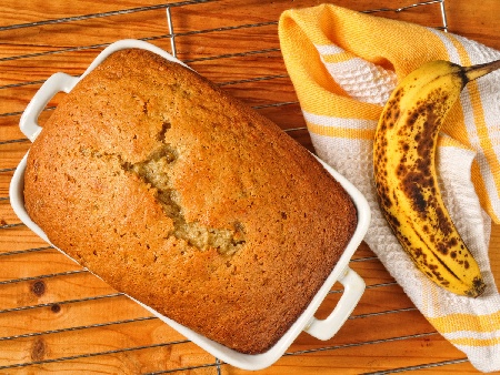 Тестото се разбърква и се разпределя в подготвената форма. Банановият хляб се пече около 60 минути или до суха клечка.