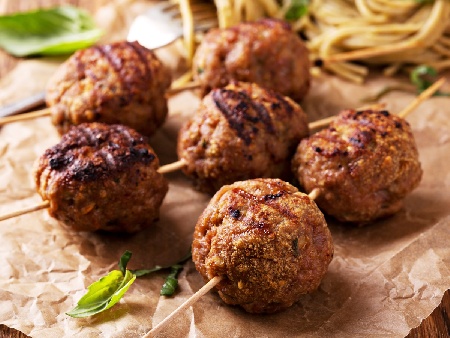В малка чиния смесете топла вода и шафран. Оставете да престои две минути и добавете към каймата. Омесете добре и оформете сместа на 24 топки. Наредете по няколко кюфтенца на дървени шишчета.