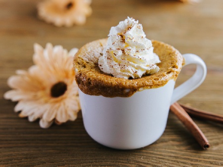 Кекс с тиква, канела и джинджифил в чаша в микровълнова печка