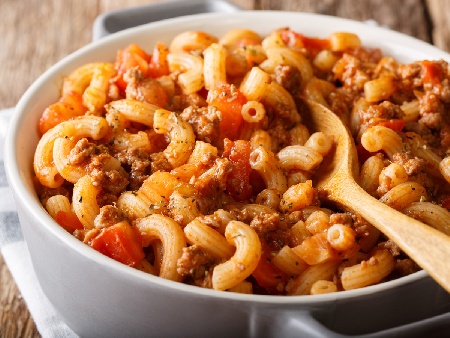 Паста с говежда кайма, доматен сос и сметана на фурна