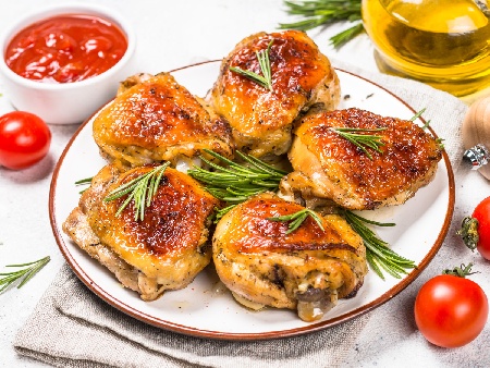 Сладко-пикантни печени пилешки бутчета на барбекю / скара