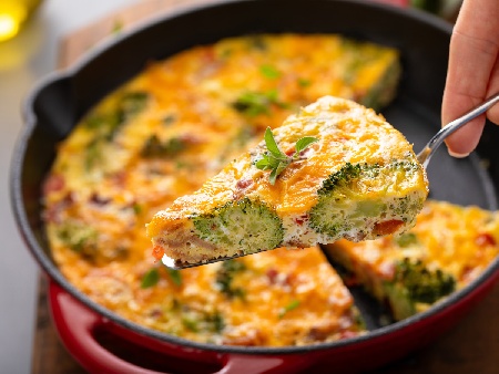 Яйцата се разбиват в купа. Броколите се нарязват и се задушават леко. Добавят се към яйцата заедно с настърган кашкавал.