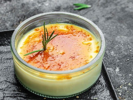 Накрая отгоре се поръсва със захар и се карамелизира с помощта на кухненска горелка.